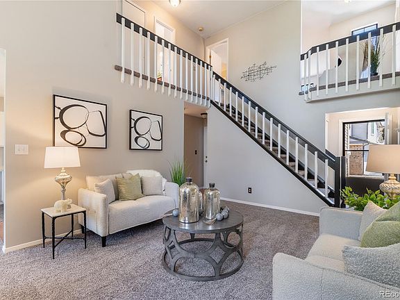 Welcome to a sanctuary of style and comfort! This beautiful townhome lives like a single family home and seamlessly blends inviting ambiance with practical living, offering a serene retreat. Step inside and be greeted by new carpet & paint throughout with soaring ceilings flooding the space with natural light, creating an airy and spacious atmosphere. The main level boasts an open-concept layout, connecting the living, dining, and kitchen areas. The kitchen offers brand new stainless steel appliances and a main floor laundry area for added convenience. Say goodbye to outdated popcorn ceilings! The space has been lovingly transformed, providing a modern aesthetic that complements any décor style. Retreat upstairs to the primary suite. With its generous size, walk-in closet, updated bathroom this is the ultimate sanctuary to unwind after a long day. The second bedroom is equally inviting, offering ample space and a full guest bathroom in the hallway. The finished basement offers a versatile space that can be transformed into an additional bedroom, home office or entertainment area—the possibilities are endless! Outside, step onto your deck where the canopy of trees create a serene retreat, perfect for enjoying your morning coffee or hosting gatherings. The attached 2-car garage provides secure parking and additional storage space. With its prime, yet tucked away location, this home offers easy access to dining, shopping, and entertainment options and is just minutes to Buckley Air Force Base. No one above or below and an end unit - an opportunity not to be missed!