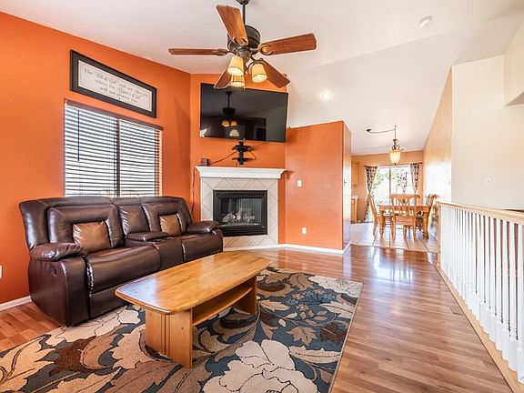 Ranch style home offering 4 bedrooms, 3 baths, spacious living room with a gas log Fireplace; nice size kitchen with eating area and a deck off kitchen; main level master bedroom and main level laundry room are a huge plus! Walk out basement offers a dry bar that has tile and room for a table or a game of sorts, full bathroom. The bedroom in the basement has a cubby for either a bed or to sit in and read-really cool!! The large family room with a pellet stove! The covered patio is nice for entertaining; six foot privacy wood fence, rock and trees for easy landscaping! This home is about 3 blocks from Desert Sage Elementary and close to middle and high school; centrally located and easy to commute to Florence/Canon City or Pueblo! Seller has added a new water heater, furnace and AC- eases the mind for the mechanicals of the home!