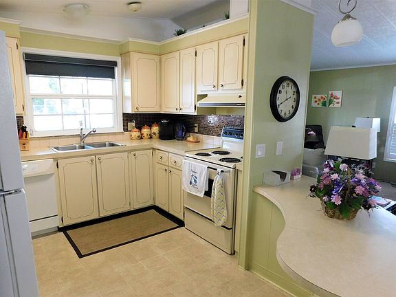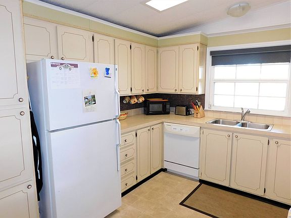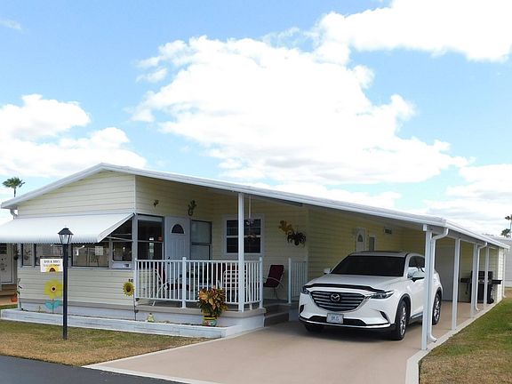 PERFECTION.... This impeccably maintained and recently updated home offers an inviting exterior, freshly painted driveway, new plumbing, new flexible ductwork, lifetime roof with transferrable waranty, newer A/C unit, new railings, new aluminum posts and support beam in the carport, renovated bathrooms, bedrooms, dining room, and Florida room, and new thermopane windows throughout. The open floor plan of this home's kitchen, dining and living room is perfect for entertaining! Think of the fun you'll have experimenting with furniture placement because of all this space. The kitchen boasts a breakfast bar, pantry, sprawling counterspace, and ample cabinetry. This beautiful, sunny kitchen is perfect for the cook in your family! Imagine the dinner parties you'll host in the updated dining room and how many friends and family you can entertain as the living room opens to the newly renovated all-season Florida room. The Florida room features tinted windows and new window coverings that keep the room nice and cool - a welcome retreat for curling up with a good book or watching your favorite show. Use your own creativity as you decide how to utilize the large flex space this room offers. Would you like a private den, a craft room, a gym, or new office? The potential is endless. Enjoy the tropical breezes while relaxing or entertaining friends on this home's expansive covered porch with direct access to the Florida room. It's the ideal spot for enjoying your favorite beverage or for chatting with friends. Light and bright best describes the master bedroom with beautiful berber carpeting and large walk-in closet. The closet is highlighted with numerous built-in shelves and plenty of space for your wardrobe. The updated en-suite bath has a walk-in shower, new toilet, new vanity, new mirror, new exhaust fan, new flooring, and new light fixture. Relaxation and privacy combine in the home's guest room and bath. The renovated guest bath offers a tub and shower combination, new toilet, new exhaust fan, new flooring, new light fixture, and plenty of cabinet storage in the new vanity. The sizeable guest room features a large window, a ceiling fan, and wall-mounted TV. Another bonus to this home is the large attached storage shed that doubles as the laundry area. The washer and new dryer are included in the sale. This spacious room with loft storage is perfect for housing holiday decorations, golf clubs, bikes, etc. An added bonus is that the entire house has been freshly painted, is being offered partially furnished, and has beautiful window treatments throughout! The monthly lot rent is approximately $430 and includes lawn mowing. Experience fun-filled, carefree, resort-style living at its finest at Villa Del Sol a premiere 55+ community. Call Patti to tour. *All listing information is deemed reliable but not guaranteed and should be independently verified through personal inspection by appropriate professionals. Listing company cannot guarantee or warrant the accuracy of this information or condition of the property. The buyer assumes full responsibility for obtaining all current rates of lot rent, fees, and pass-on costs. Additionally, the buyer is responsible for obtaining all rules, regulations, pet policies, etc., associated with the community, park, or home from the park manager.