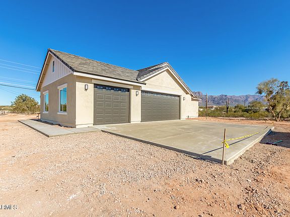 Gorgeous Custom new build on 1.25 acres of Horse Property No HOA! This 4-bedroom 2 bath home with 2 X 6 CONSTRUCTION has it all. 4th bedroom can serve as an office and has a closet. Kitchen is stunning and spacious with white cabinets, s/s appliances, beautiful quartz countertops and backsplash. Huge walk in pantry. Open floor plan with 50 inch electric fireplace. An abundance of windows to let in the natural light. Generous Master suite has dual vanities, separate tub and shower gorgeous shower surrounds and an oversized walk-in closet. Wash tub sink in garage. Large bedrooms, huge 3 car garage,9 ceilings, and energy efficient spray foam insulation. Oversized porch and patio for enjoying the Arizona weather with Amazing views of the Superstition Mountains.