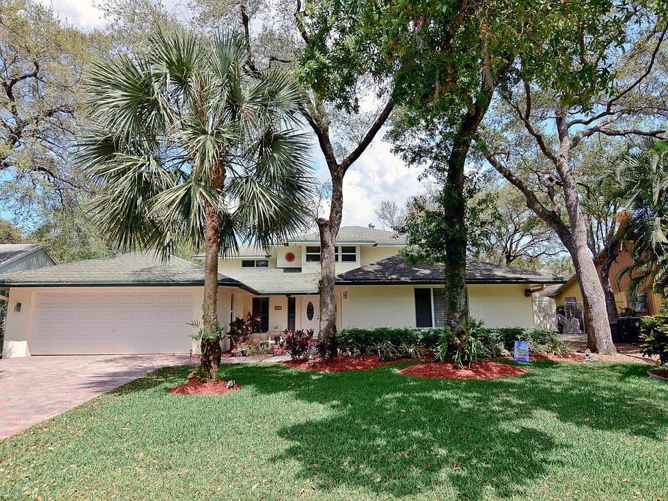 Nestled among majestic oak trees on a quiet tree-lined road is an inviting 5 bedroom, 3 bath pool home in Boca's most desirable neighborhood. 841 SW 19th Street. Originally owned by an architect this charming home features gracious living spaces with vaulted ceilings, a loft which could transform into a 6th bedroom, play area, or second family room, and a second story terrace overlooking the treetops and manicured grounds. Throughout the home you will find a renovated eat in kitchen with stainless steel appliances and granite counter tops, formal dining room with French doors opening to the patio and screened in pool, and renovated master bath with dual sinks and separate shower. Luxurious touches include high impact windows and doors, Plantation shutters, new brick paved walk and driveway
