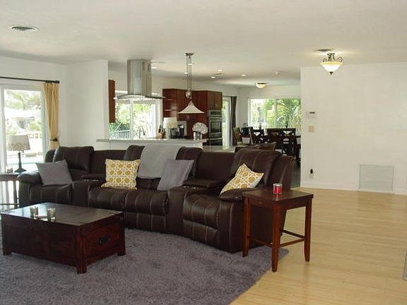 Nicely updated & resort-like, waterfront pool home w/ocean access (Fixed Bridges , split BR plan w/lots of natural light. Knockdown walls & ceilings. Bamboo floors in social areas & 2 bedrooms. Updated eat-in kitchen w/wood cabinets, stainless steel appliances including double oven,large pantry, breakfast bar + spacious breakfast area. Separate Dining Room too! Master Suite has large walk-in closet,beautifully remodeled bathroom w/wood vanity, marble shower w/seamless enclosure & cabana access to pool. 2nd bathroom also remodeled. Most doors & windows are impact glass. Plantation shutters. Open kidney shaped pool + spacious urotile patio overlooks canal. Part of 2 car garage converted to laundry room. Long lasting metal roof 2010. Exterior has been freshly painted.