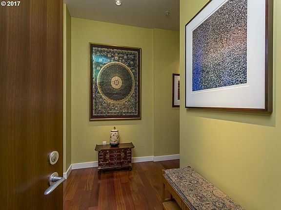 Breathtaking RIVERFRONT condo: 10' ceilings, extensive use of slab stone, tile and cherry floors. Uniquely wonderful floor plan with super light quality. Great room w/243 sf terrace + master overlook the water & Ross Island. Huge storage/utility rm + large pantry. Auto sunshades, custom sheers & lights in great room & master. SHE IS AN ART PIECE!