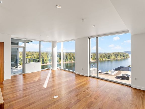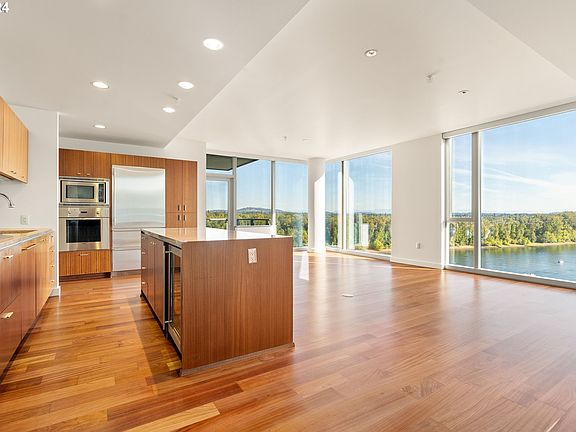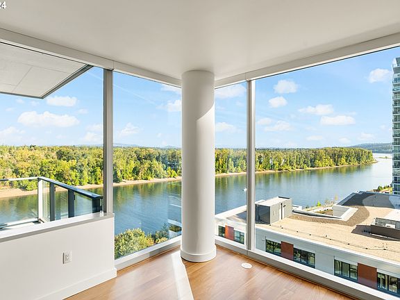 Exceptional SE facing home in Atwater Place with picturesque views of the Willamette River & Mt Hood. This light-filled 2 bedroom + den, 2 bath home features expansive floor to ceiling windows, gas fireplace, gourmet kitchen with premium appliances & wine fridge, covered balcony, beautifully re-finished wood floors, new paint throughout, and a fantastic floor plan that offers ample storage and an additional den / flex space. Home is move-in ready and complete with 2 parking spaces. Nestled in the coveted South Waterfront community, enjoy luxury riverfront living with the convenience of restaurants, Streetcar, OHSU, greenway trail, and more just steps away.