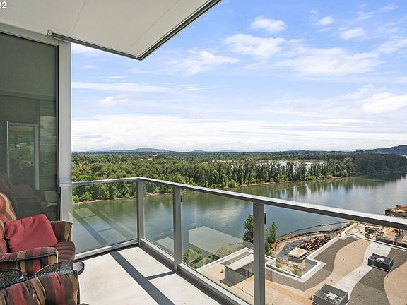 Luxurious home in Atwater Place with expansive views of Willamette River, Mt Hood & West Hills! This spacious 2 bedroom + den, 2 1/2 bath home boasts natural light throughout w/ floor to ceiling windows. Premium features include gas fireplace, high-end kitchen, two large ensuite bedrooms, and generous covered terrace. Complete w/ 2 side-by-side parking spaces & large indoor storage unit. Enjoy living in the peaceful South Waterfront community w/ restaurants, farmers market, OHSU, trails & more.