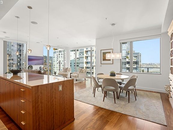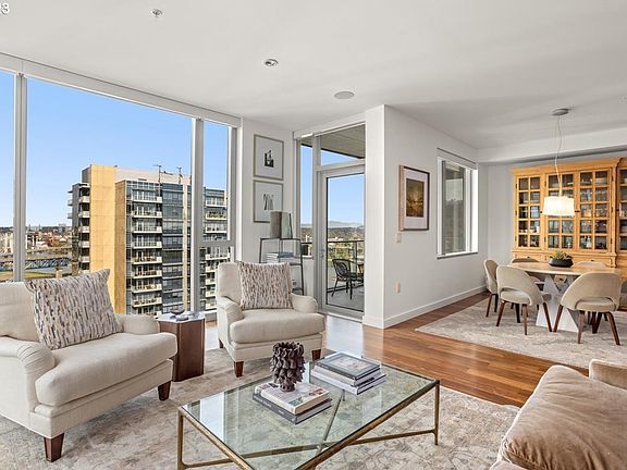 Stunning, light-filled NW corner home in the coveted Atwater Place offering the best of riverfront living. This pristine 2 bedroom, 2 bath home boasts picturesque views of the Willamette River, West Hills, city skyline and Tilikum Bridge. Home features an open & spacious floor plan, covered balcony, floor to ceiling windows, motorized shades, large primary suite w/ walk-in closet, 2 parking spaces & storage unit. Nestled in the serene South Waterfront community - enjoy the convenience of restaurants, trails, parks, OHSU, Streetcar, and more right outside your door while being minutes away from downtown PDX.