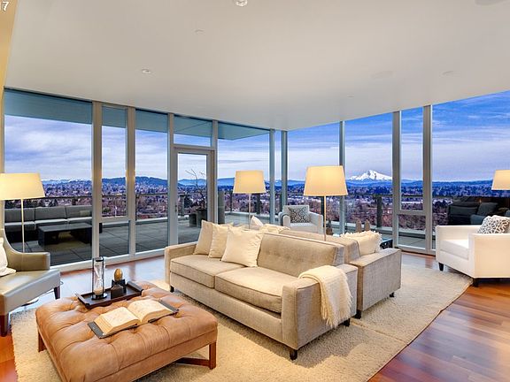 A South Waterfront jewel of a penthouse. Mountain and river views from floor to ceiling windows. This sophisticated and luxurious retreat has location, size, views and features you expect. The expansive living space is complemented by a large outdoor terraces. Portland Streetcar and MAX light rail stops, OHSU Ariel Tram and easy freeway access offer a variety of transportation options. Join the Community Garden or Dog Park.