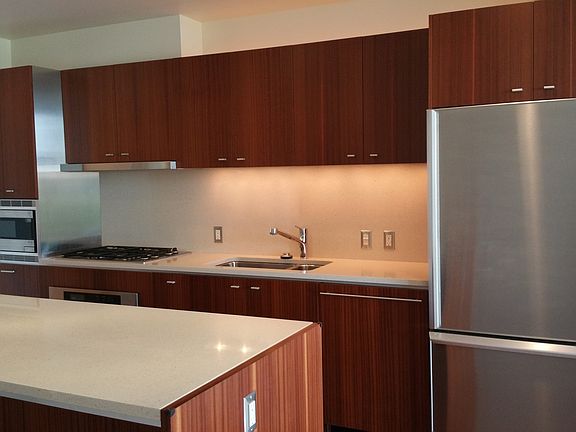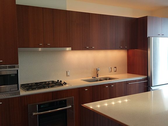 The Atwater Condominiums at South Waterfront Facing east overlooking greenspace and steps from river walkway! Beautiful condo with 1 bedroom, 1-1/2 baths, 1071 square feet! Gorgeous kitchen with quartz counters, island and wood/mahogany cabinets, gas range! Stainless appliances, built-in microwave. Very nice sized bathroom with double vanities. Big walk-in closet and spacious linen closet. Large balcony suitable for table & 4 chairs & BBQ! There is even a gas BBQ hook-up on the balcony. One designated parking space in the parking garage.