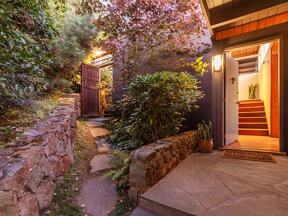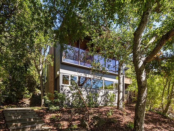 Located just above Solano Avenue, this home is minutes from world class shopping and dining. Local restaurant favorites such as Rivoli, Ajanta, Cafe Valparaiso, Sichuan Style and Jerusalem Organic Kitchen are just a few of the many international flavor choices on the Avenue. Minutes from Berkeley's Gourmet Ghetto, the North Berkeley Branch Library and the University of California, there are endless opportunities to enjoy and enrich your life. If you love the outdoors, this home is situated near Indian Rock Park and in one of Berkeley's most coveted neighborhoods. Indian Rock Park is one of Berkeley's rock parks in the Northbrae area, providing gorgeous views of the San Francisco Bay and offers challenges for the novice rock climber. There are also several other parks nearby: Mortar Rock Park, John Hinkel Park, Veterans Memorial Park, Albany Hill Park, Creekside Park, and always a favorite, the Buchanan Dog Beach. As you come up the meandering stone stairway on the property, you reach the large basement with a full row of windows looking out to the California oaks. Up a few more stairs you reach the beautiful blue front door hidden on the side of the house; a sweet, whimsical, touch by Henry Hill. The main level is an open floor plan with kitchen, dining and living. Off the living room is an asymmetrical private redwood deck. Completing the main floor is a built in office and a full bath. Stairs take you up to the 2 bedrooms and 1 bath. Each bedroom has a door to the private back deck for your evening relaxation. The back yard slopes up to 2 more decks, each with views and breezes from the bay. The upper deck is a wonderful place to have sunset dinner with Golden Gate views. The Bay tradition is well represented in this home, with its elevated vertical form, wood exterior, wood flooring, and eye-catching modernist living room. With its first time on market in over 30 years, this home is the inspirational place you've been looking for.
