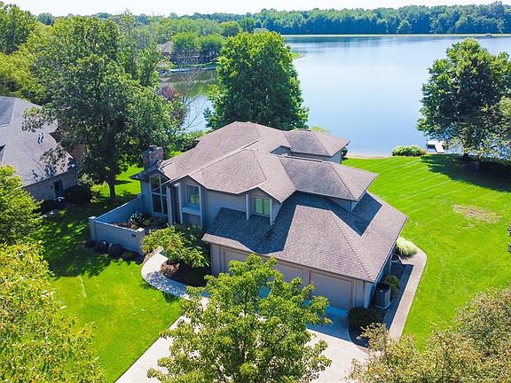 Gorgeous custom built home on one of Tipton Lakes’ largest lots! Lovingly maintained one owner offering panoramic lake views throughout. Living room and dining room boast 18 foot ceiling and sweeping views of the lake. The updated kitchen features white cabinets, granite counters, stainless steel appliances and breakfast room connecting to the family room both overlook the lake & open to a large deck. You'll love the private balcony and ensuite bath with Travertine floors in the main bedroom. The walk-out lower level has a kitchenette, a family room with gas fireplace, two bedrooms and a full bath. Professionally landscaped, two courtyards, private dock and irrigation system. Recent updates: high efficiency gas furnace and water heater.