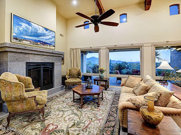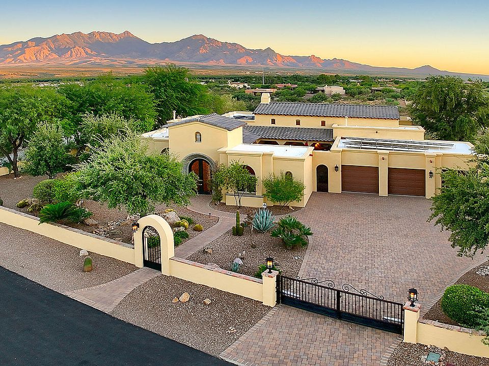As you become ready to redefine life on your own terms, consider this luxurious estate right in the center of Green Valley! Discover a desert oasis where you can enjoy absolute privacy while relaxing on your pool deck and still bike to town for your morning coffee. Combining elegant, refined interior and outdoor spaces with gracious proportions and unbelievable views, this home offers you the indoor/outdoor lifestyle you have been waiting for. The curb appeal is impressive with interesting architectural details, custom iron gates, paved drive and magnificent front courtyard with its own dramatic lighting and stone fireplace. Inside, the Santa Rita Mountain VIEWS pour into the living areas through oversized windows, along with abundant natural light. A sparkling pool and spa are the focal point of the magnificent back yard, overlooking a wash and those incredible mountains. Inside, The enviable list of amenities that this home offers is endless. The highly upgraded kitchen features luxurious cabinetry, Miele appliances, copper sink and a sub zero refrigerator with cabinet overlays. A wine and beverage bar is adjacent and features its own sub-zero wine frig, drink refrigerator, and cocktail glass storage. A large stone fireplace commands your attention and anchors the room. French doors lead out to the gorgeous front courtyard and the separate guest casita. Your owner's suite is oversized and luxurious with a walk-in tiled shower and soaking tub. Two extra bedrooms and a guest casita in the courtyard offer options for any lifestyle.....his and her offices, craft rooms, grandchildren or winter visitors. One of the most impressive homes in Green Valley, exemplifying the art of a joyful and graceful desert lifestyle!
