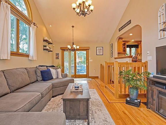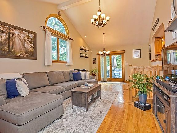 OFFER DEADLINE Aug 16th @5pm.Great home for a first time home buyer or someone looking to downsize. This contemporary ranch has a 3 bedroom septic, it is currently configured as a 2 bedroom. Could be converted back to a 3 bedroom. Open floor plan living room with vaulted ceiling, hardwood floors with walnut border and dining area. Renovated kitchen with corian counters,built in oven ,cooktop and pantry. Spacious Master bedroom,vaulted ceiling,hardwood floors,double closets and a fireplace(never used by current owners). Additional bedroom with large closet. Full bath on main floor with deep soaking tub,corian walls & shower.Finished basement with full bathroom, The bathroom is huge with a spacious 2 seat shower & 2 shower heads with glass door. Separate laundry room with soaking sink to clean up after your projects.Additional unfinished portion for your storage needs. Large fenced in back yard with shed. HW approx 3yrs, Septic 2016, roof 40yr architectural shingles,Anderson windows