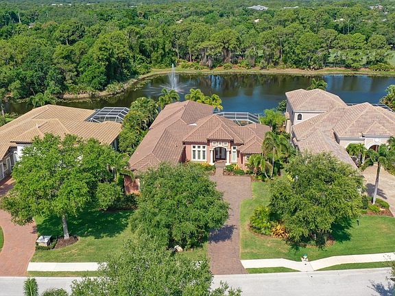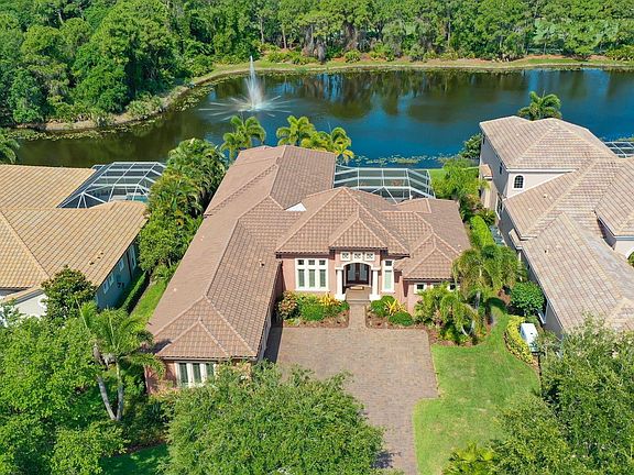 Boasting impressive direct lake and distant golf course views, serene bliss is awarded from the lavish surroundings and comforts of this University Park home. Custom built to precision by Todd Johnson, and on the market for the first time since construction, exceptional craftsmanship and beauty are evident throughout the stunning contemporary residence. Upon arrival, spectacular Florida-influenced curb appeal complements the lovely architecture as you enter through exquisite decorative double leaded glass doors that make a bold statement. Tile throughout the main dwelling areas transitions you from the gracious dining room flanking the foyer to the grand open concept living room and kitchen filled with an abundance of natural light from four sets of French doors. The family chef will delight in preparing meals for any occasion with the illustrious custom kitchen featuring a double island, granite countertops, wine cooler and Thermador appliances, as well as outdoor kitchen including a gas grill to dine alfresco overlooking the PebbleTec pool and spa in the screened lanai. Meeting today's needs of form, functionality and flexibility, the den is easily convertible to a fourth bedroom or office space for working remotely. Fit for the most discerning needs, the spacious master suite is a sanctuary for self-pampering with plantation shutters and en-suite bath featuring his and hers sinks, a soaking tub and walk-in shower. Impact-resistant double pane windows and doors throughout, additional foam installation and an oversized three-car garage with extra storage and golf cart parking enhance the convenience of living in this home. Located in the prestigious setting of Grosvenor Gardens where this home is one of only 29 estates, welcome to an upscale way of life. University Park caters to those seeking a social and active lifestyle with 27 holes of golf, 11 Har-Tru tennis courts, a state-of-the-art fitness center and Park Grill. Drive your golf cart to the club for dinner or head outside of the community for abundant fine dining and shopping options just beyond the gates.