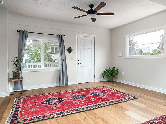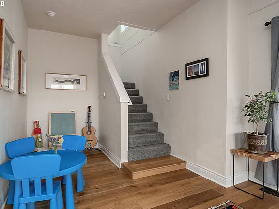 High above the street, this bright St. Johns home has a coveted open floor plan, warm, wide plank wood floors and plenty of light. Open the FR doors from DR/Kit to go directly to the large covered deck and back yard. Newly updated bed/bath on main for office, guest suite or whatever your heart desires. Two spacious bedrooms with lofts, bath and a bonus area upstairs make more room to live/play. Off street parking in shared driveway. Fully fenced, private yard and shed for all your toys.
