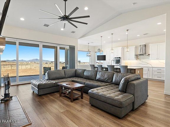 $15K PRICE IMPROVEMENT. Beautifully Custom-built, highly upgraded, 2-acre fully fenced, 2,574 sq ft property w/ panoramic views in desired Lonesome Valley. Enjoy rural, country living while only being 15 mins away from shopping & dining in Prescott Valley. Admire the breathtaking sunrises/sunsets & stunning mountain views. This home offers abundant natural light & is very energy efficient w/ Owned Solar & an electric gate, transferable FREE high speed internet, 2X6 framing w/ added insulation, electric appliances & thermal window treatments. Its spacious layout includes 3 beds + office w/ double doors/potential 4th room & 3 full baths + a 1/2 bath.