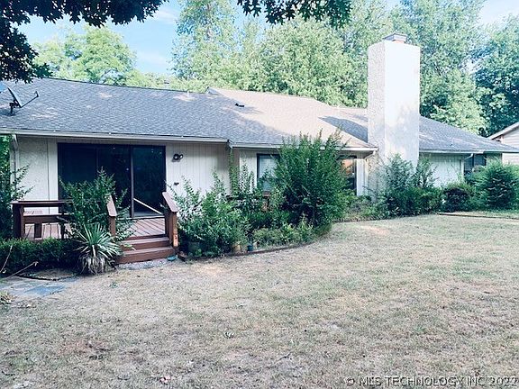 Well-maintained home located in Jenks schools. This home offers a large back yard with wooden deck, beautiful landscaping, decorative sidewalks and mature trees. The 3 bedrooms are all oversized and offer large walk-in closets, quality carpet and ceiling fans. Laundry room is conveniently located in the main hall near the bedrooms. Hallway and laundry room have built-in storage. With two living and two dining spaces, interior stonework and unique architecture, this home has much potential.