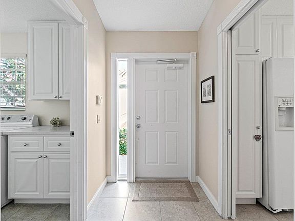Light, bright, and spacious 2 bedroom, 2 bath extended Capri model with gorgeous lake views in beautiful Villagewalk of Wellington. This fabulous unit with approximately 160 extra living square feet is available turnkey with all the furniture and accessories (with a few staging exclusions). Large porcelain tile throughout, neutral colors, vaulted ceilings, updated white kitchen, custom built-in shelving in living room, 2018 hot water heater, large laundry room with sink, central vac, accordian shutters, and the list goes on. Both bedrooms are very spacious with walk-in closets. Enjoy peaceful sunsets in your large screened in patio overlooking the lake. This property is move-in ready and has only been lived in a few months out of the year since it's been built. Villagewalk of Wellington is a fabulous gated community with lot of great amenities, including a gorgeous clubhouse, resort style pools, tennis courts, fitness center, basketball courts, playground, a cafe, library, and much more.
