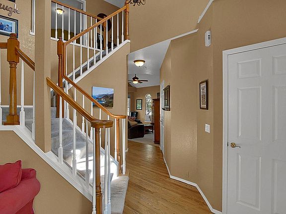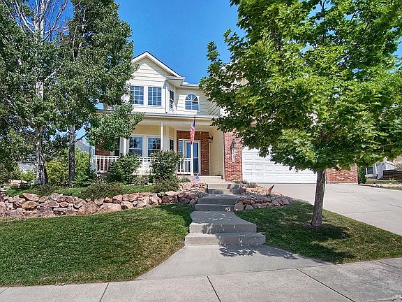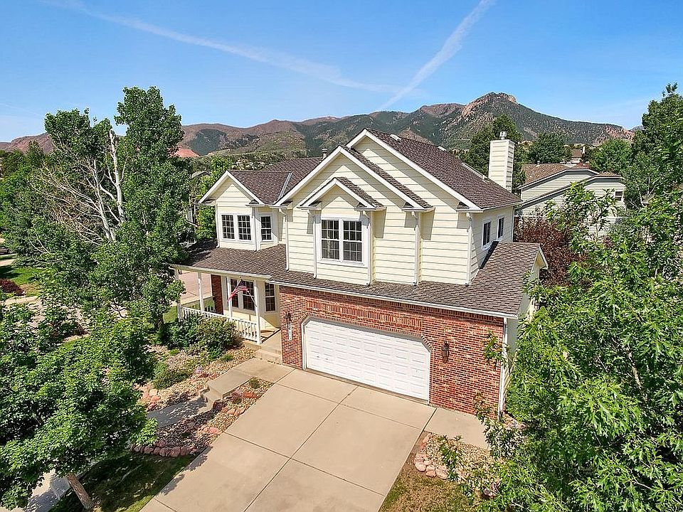 Step inside this beautiful 2-story home nestled on a cul-de-sac in Peregrine Valley with Blodgett Peak views. The open floor plan is the perfect blend of formal & casual living spaces. The inviting foyer with gleaming hardwood floors and dramatic stairway draws you into the sunny living room. The gourmet kitchen provides granite counters, upgraded stainless appliances, walk-in pantry & dining nook. The kitchen adjoins the formal dining room and overlooks the family room making a perfect flow for entertaining. Unwind in the family room boasting soaring ceilings and cozy gas fireplace. Enjoy summer evenings on the pavered back patio with custom pergola. The beautifully appointed master retreat offers Blodgett Peak views, a luxurious 5pc bath & his and her walk-in closets. French doors lead to the study that is perfectly positioned for a quiet work space. The upper level features two spacious secondary bedrooms with walk-in closets, full bathroom and laundry room. The finished basement provides a second family room large enough to host a gaming area and media niche, fourth bed room, exercise/dance studio with mirrored wall & rebound flooring and storage room. Beautifully updated, this home offers a renovated kitchen, updated bathrooms, updated lighting and vinyl windows. Walk to award winning Woodmen Roberts Elementary, neighborhood park or access acres of hiking trails in Blodgett Open Space. Situated in the foothills of Peregrine, you will enjoy mountain views, mature trees and wildlife yet you are minutes from I-25 with easy access to downtown Co Springs or Denver, USAFA, shopping and dining.