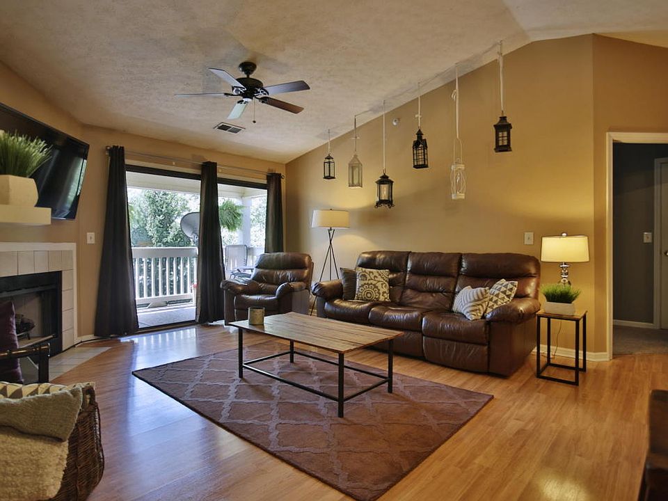 This Beautiful Condo has an open inviting floorplan. Family room with vaulted ceilings, cozy gas fireplace and private balcony, open to the kitchen that provides ample cabinets. The bedrooms are privately located on separate ends of the unit. The Master suite features ceiling fans, vaulted ceiling and private master bath. Don't miss out on the relaxation and recreation of this complex that include swimming pool, club house, tennis and basketball courts all for a low monthly maintenance fee. The condo is conveniently located next to shopping, movies, and expressways. Addl storage room in a private locked, storage closet in internal hallway of building (Next to unit)