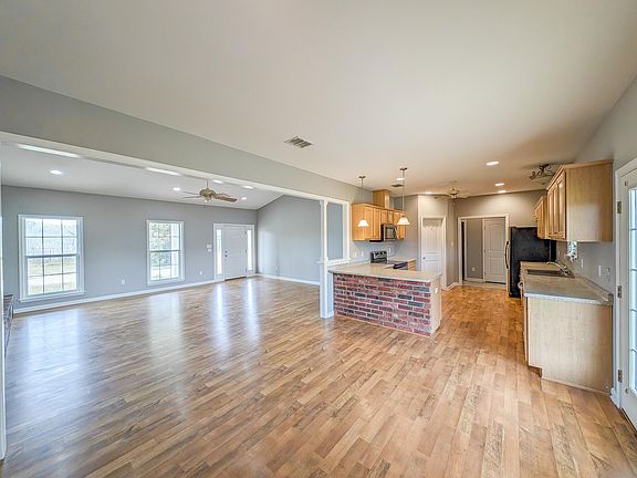 Enjoy peace, privacy, and over 4 acres of beautiful land with this well-maintained 2008 home on Buncombe Road. A gated entry and circular drive lead to this custom-built residence featuring two 2-car side-entry garages and a welcoming front porch. Inside, find a clean and bright open floor plan with neutral colors and wood laminate flooring. The living room offers a cathedral ceiling and a cozy brick fireplace with custom shelving. The kitchen is well-equipped with ample storage and counter space, a smooth-top range, and a large pantry. French doors open to an oversized covered patio and a huge backyard.