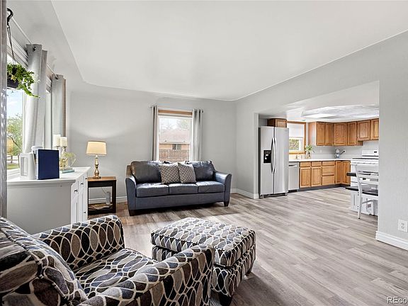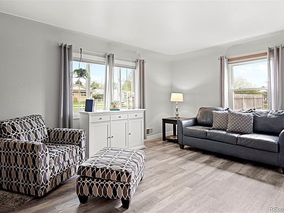 ENJOY THE COLORADO OUTDOORS in your amazing backyard, perfectly located next to peaceful open space with MOUNTAIN and LAKE VIEWS! Charming, lived in and loved, ranch-style home, with a LARGE, terrace-style backyard, featuring a covered patio, barbecue grill, OVERSIZED 4-CAR GARAGE, additional storage sheds or workshops, and tall, mature trees and foliage. When you first enter the home, you'll appreciate the freshly updated LUXURY-VINYL PLANK floors and NEW PAINT, drawing you into the NEWLY REMODELED (2023), open-floor plan. The updated kitchen includes QUARTZ COUNTERTOPS, a new STAINLESS STEEL refrigerator and dishwasher, a GAS RANGE, and upgraded light fixture. The NEW WINDOWS on the main level provide an abundance of natural light; and, after dark, you'll love the custom, REMOTE-CONTROLLED WINDOW COVERINGS for your convenience and added privacy. The main-level primary bedroom has two WALK-IN closets and newer carpet (2023), as does the second bedroom. Need additional living space? The FULL-FINISHED BASEMENT is perfect for another living room or recreation room, complete with NEW CARPET (2024) and FRESH PAINT. The two additional, conforming bedrooms each have large, walk-in closets and can be used as spare bedrooms, hobby rooms, or a private home-office space. The basement bathroom was recently REMODELED (2023) and boasts luxury-vinyl plank floors, a CUSTOM-TILED SHOWER with a sliding GLASS DOOR, and UPDATED VANITY and light fixture! Venture out to the OVERSIZED 4-CAR GARAGE, where you can comfortably enjoy the space, regardless of the temperature outside! The detached garage is heated and also has a swamp cooler to keep you cool, while tinkering around in the garage! There's plenty of additional storage space in the THREE backyard SHEDS, all complete with electricity. NO HOA and plenty of outdoor space to make this property more of everything you want in a HOME! NEWER AC and FURNACE (2022) and 5-YEAR ROOF CERTIFICATION - move in with peace-of mind! SEE IT TODAY!
