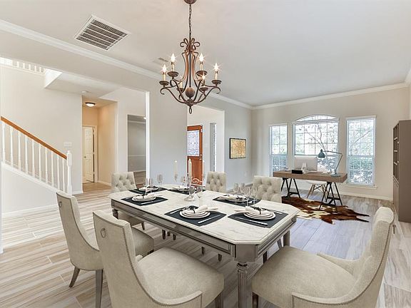 Stately executive K. Hovanian 5 bedroom, 3.5 bathroom home located in Glenn Haven Estates zoned to prestigious Klein ISD, wood look tile flooring flows thru this light neutral home, formal dining and living, two story den with corner fireplace and wall of windows to the backyard let in natural light, open living floor plan, gourmet kitchen with granite counters, gas cooking, walk-in pantry, tons of storage and sunny breakfast room, spacious private master suite down with large walk-in closet, double sinks, makeup vanity, whirlpool garden tub, separate shower, game room with 4 bedrooms and two full baths upstairs, patio for outside entertaining in the backyard, oak trees out front with mature landscaping, two car attached garage, ready for immediate move-in. Please call today for a private showing.