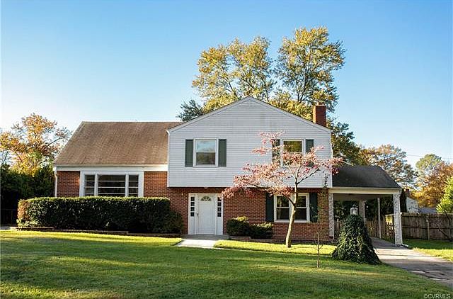 Inviting renovated 3 bedroom, 2 bath home with an oversized 2 car garage in the west end of Henrico county. All new interior paint re finished hardwood floors throughout most of home. Stepping into the home you will find a captivating entry hall, a family room/study with a brick fireplace new carpeting, a full bath, and a mud room. Up a short flight of stairs, a grand sunny family room, a formal dinning room and an eat in kitchen with new tile flooring. Up a 2nd short flight of stairs, 3 large bedrooms and a tastefully redone full bath. Up a 3rd short flight of stairs, a gracious rec room that could be used as a 4th bedroom. The exterior of the home features a hard to find in the neighborhood, oversized 2 car garage with a workshop and its own separate driveway. On the other side of the home a paved driveway with a carport. Finishing touches include 2 patio areas and a beautiful yard. Minutes from I-64, and a multitude of shopping options.