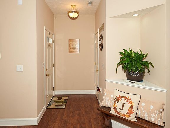 Charming 2-bed, 2-bath Patio Home in a great neighborhood. Open floor plan, no steps. Kitchen has modern white cabinets, breakfast bar, pantry, and lots of counter space. Updated subway tile backsplash. Seller replaced appliances with stainless steel, all remaining. Seller added beautiful hardwood flooring throughout Kitchen, Dining Area, Foyer and Living Room. The home has been completely painted a tasteful, neutral color. First-floor primary bedroom with attached bath and large walk-in closet. Handy first-floor Laundry, washer and dryer remain. One-car attached garage, deep enough for plenty of extra storage. Attached screened-in porch. Community Clubhouse with fitness room and walking trail. Great location tucked at back of neighborhood. Quiet, carefree living.