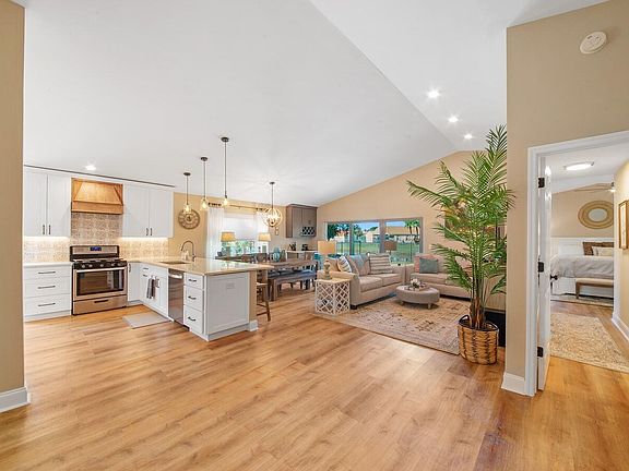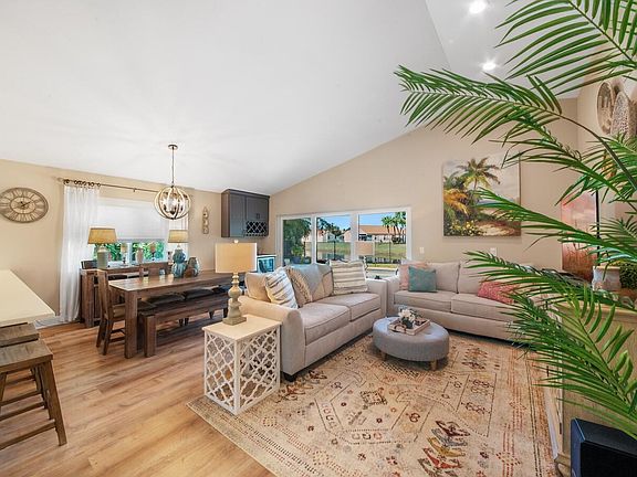 Tasteful and sophisticated home in the highly desirable Brentwood community. This home has been renovated top to bottom. Impact windows and sliding doors, new lighting and fans, custom window treatments, fresh paint, new floors, new water heater, newer AC, fully fenced in yard and new paver patio. The renovated kitchen has white shaker soft close cabinets, tile backsplash, Quartz counter tops, and new appliances. The primary suite has beautiful lake and pool view, new walk-in closet, fully renovated primary bathroom with free standing tub, glass walk in shower, double sinks and make up vanity. Spend Florida winters in this heated pool while soaking up the view. Brentwood is an animal friendly community with A rated schools. Relax in the backyard paradise that features a covered patio, pool with a new heater and pump and new lush tropical custom landscaping all while enjoying the stunning lake view.
