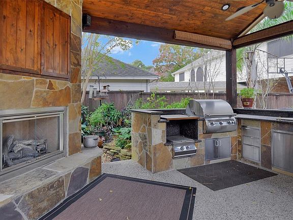 One of a kind on this backyard paradise featuring lagoon pool with rock waterfall, upgraded pebble-tech with attached hot tub. The oversized outdoor living space is to die for with kitchen featuring fire magic stainless appliances, fireplace and 2 televisions! There is even a "She-shed" for plant lovers! Don't miss the outdoor bathroom! 8' leaded glass front door. The kitchen has been completely updated with Electrolux double convection ovens, stainless microwave and warming drawer! Large island, granite counters, and stone backsplash. The built-in refrigerator to remain. Den with wet bar. The oversized master is located downstairs with huge executive bathroom, garden tub and separate updated shower. There are 4 bedrooms upstairs all with access to Jack and Jill bathrooms. Replaced Siding! Roof 8 yrs! 3 car garage! House Generator!