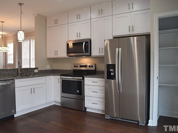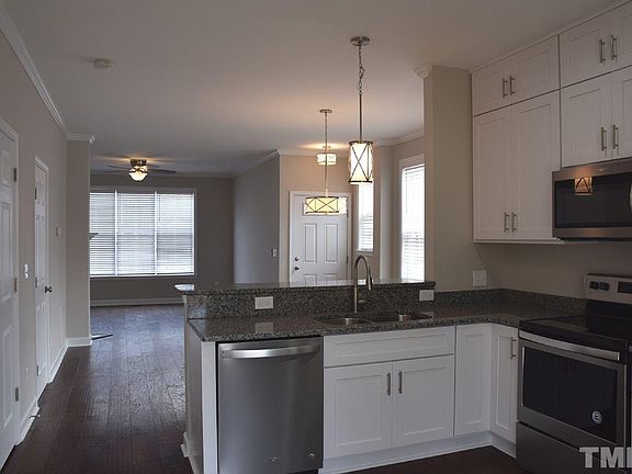 Fully renovated and gorgeous NW Raleigh spacious 2 bedroom end unit townhome with lower level flex room and 16' X 14' storage room. 7" wide plank, handsraped hardwoods and crown molding throughout main level. Open concept plan includes kitchen with granite, stainless steel appliances and Shaker style cabinets. Angled gas log fireplace in family room. Master suite with dual closets, vaulted ceiling and fan. New 3 zone HVAC system, tankless water heater, LED lights for better energy efficiency. Must see!