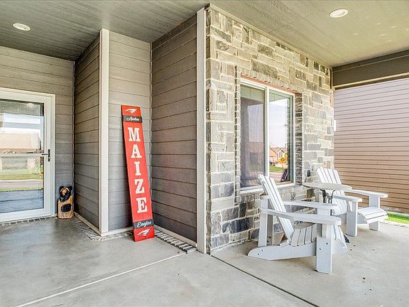 Welcome home to this beautiful property in desirable Emerald Springs. If you are needing space…this is the home for you with 6 bedrooms along with a bonus office! Buyers will appreciate all this home has to offer from the moment they walk in the door. The beautiful front porch leads you to the open, split bedroom plan. The kitchen boasts quartz counters, tray ceiling, plenty of cabinets, pot filler, pantry/with electrical outlets, stainless steel appliances and a large island. This inviting living room has an abundance of natural light, built-in shelving around the fireplace and 9 foot side walls. The primary suite includes: fireplace, a beautiful custom shower with two shower heads, two vanities, a large walk-in closet which passes through to the laundry room and a door leading out to the divided deck. The main floor also offers a dining room with two sets of sliding doors providing access to both decks, two more bedrooms, drop zone and laundry (with sink). The view-out basement has THREE bedrooms, office/flex room, full bath, wet bar, plenty of space for entertaining and an abundance of storage. The office space was originally designed as a theatre room. Buyers will appreciate the large covered deck which is a perfect spot to watch TV, read a book or watch the sunset. Seller has added concrete below both decks for extra usable space. The sprinkler system and irrigation well is a nice addition for the new owner to complete the landscaping in this fenced yard. Do not miss the 34x28 garage with some shelving remaining. So many extras added by the sellers during the build process. This one is a must see for those moving to the popular Maize School District!
