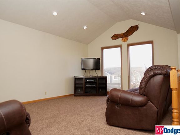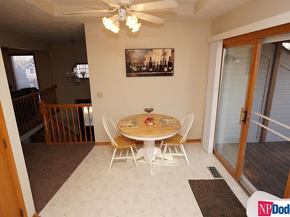 Travis Svendgard, M: 402-533-9911, travis@hometeamnebraska.com, www.hometeamnebraska.com - Well maintained 4 BR, 2 BA, 1,700+ FSF split entry home. New upstairs carpet in 2012. New roof in 2012. Large eat-in kitchen has pantry, sliding door to deck & updated appliances stay. Cathedral ceiling in LR. Spacious MBR has double closets & vaulted ceiling. Finished basement has large family room with gas fireplace. Lots of storage including above garage storage & 2 sheds. Great outdoor entertaining space with 2 decks. Fenced backyard & beautiful landscaping. Attractive move in ready home!
