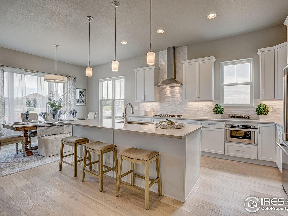 Welocme home to the former Landmark Homes model! This move-in ready stunning ranch style home has a fully finished basement w/ wet bar, & centrally located in Windsor. This home is adjacent to a pocket park & will have a future pocket park beside for ultimate privacy. Be the first homeowner to enjoy this gorgeous new home featuring Smart Home Technology, energy efficient tankless water heater & furnace, A/C, 10' ceilings, upgraded gourmet kitchen w/ stainless appliances including refrigerator, quartz counters, extended engineered hardwood throughout living space & primary bedroom, study w/ glass French doors, 8' solid doors, full landscaping, trails, mature tree lined exterior, & close to shopping, dining, medical & I-25. Schedule your private tour today! Model located at 8412 Cromwell Circle, Windsor, CO 80528.