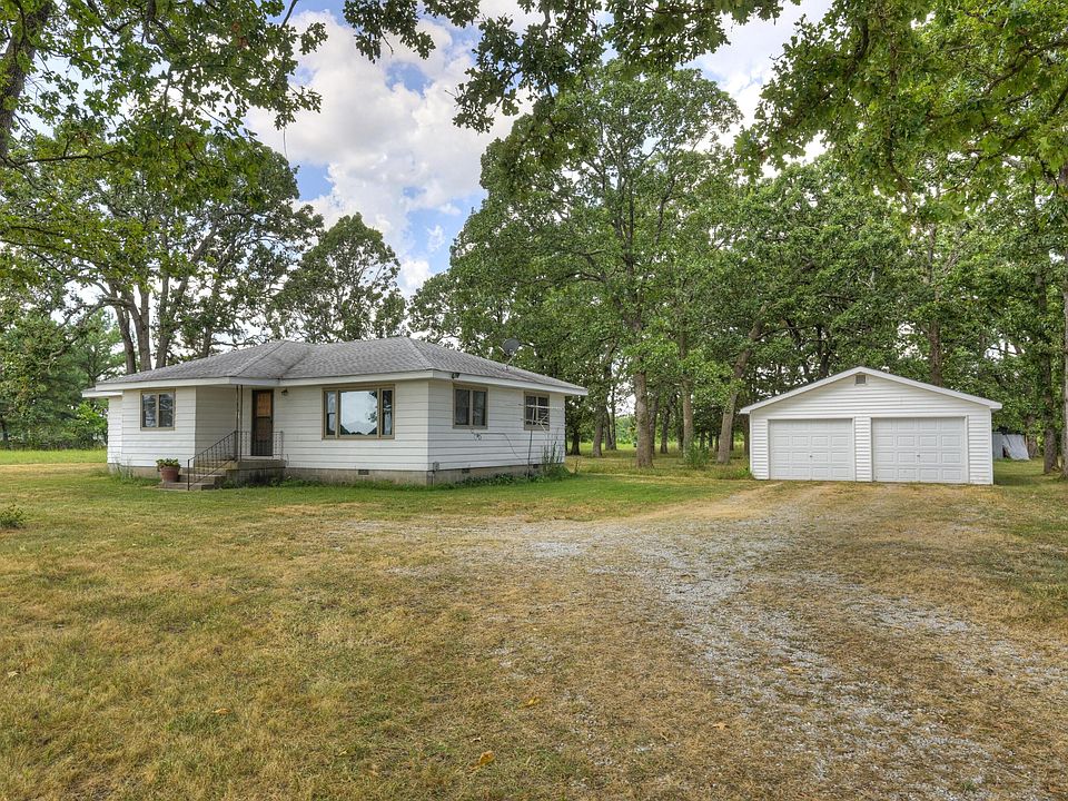 8 acres of peaceful living with convenient access to both Joplin and Neosho. This well-maintained 3-bedroom home features a beautifully updated kitchen and bath, newer windows, and Beautiful hardwood floors throughout. Step outside on the covered back porch and enjoy the wide-open space, ideal for morning coffee, evening sunsets, or simply soaking up the quiet. A spacious 2-car detached garage provides plenty of storage.