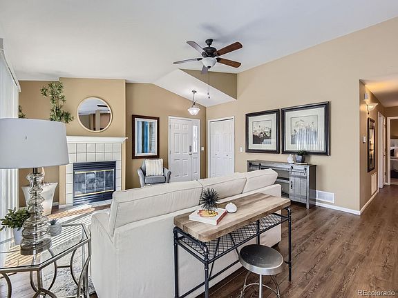 the end of the hallway, it includes a private updated bath and walk-in closet with gorgeous barn door. Heading back up the hall you pass the guest bedroom and nicely appointed full hall bath which also has been updated! The laundry area with included full-size stacked washer and dryer is just in from the garage. This closet also has pantry shelves for wonderful storage. Exit through the sliding glass door in the living room to your pleasant, extended and gated patio overlooking the lush open space to the east, a peaceful place to enjoy morning coffee. The afternoon sun won't send you in, as this patio has been outfitted with a handy ELECTRIC AWNING. Many updates include NEWER HVAC and ANDERSON windows, BEAUTIFUL GRANITE, SS appliances, undermount sink, NEW paint, Luxury Vinyl Tile plank FLOORING, GORGEOUS CEILING FANS, BUILT-IN BUFFET FOR plenty OF STORAGE, and NEWER carpet in the bedrooms. The upgraded light switches top the cake! You can simply move in to this stunning end-unit ideally located for any Denver/Boulder or Arvada commutes and close to many shopping and dining options. The tree lined Volunteer Firefighters Park just across the street has a wonderful pavilion you can rent for special events, a great playground and long paths to get your steps in. Walk or bike to Two Ponds National Wildlife Refuge close by. Welcome home to Arvada!
