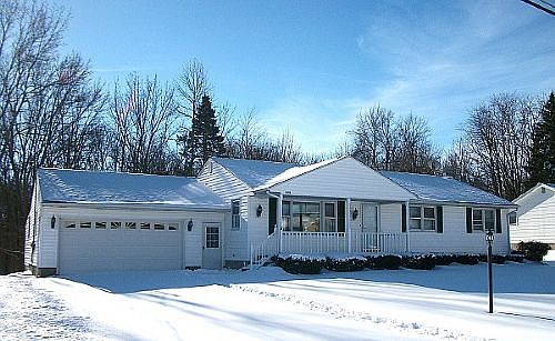 3 bdrm, 1.5 bath maintenance free ranch w/att 2 car garage on almost 1 acre backing to woods. Open flr plan, freshly painted interior, Move In Ready! Kitchen w/ceramic tile & appliances, carpeted living & dining rm, bdrms w/large closets, 1st flr laundry, finished bsmt,covered rear patio, arch roof, C/A & more. Must See (Source: RES 150)