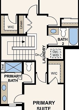 The three-story Hampton at Verona offers all the ingredients for comfortable living. Accessible from either the porch or attached garage, the lower level boasts a secondary bedroom and a full bathroom. Heading up to the main level, you'll find a dazzling open-concept layout, anchored by an oversized great room with direct access to an outdoor deck. Beyond the great room, an impressive kitchen comes with a center island and an adjacent dining area. The upper level includes two generous secondary bedrooms?one with a walk-in closet?that share a full hall bath, while a secluded primary suite is distinguished by a roomy walk-in closet and an attached bath with dual vanity sinks and a benched shower. Options may include: Tech center adjacent to great room