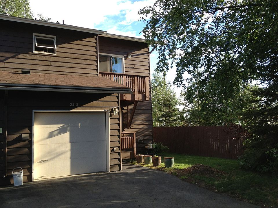 Available now! One small pet welcome!! This two bedroom, two bathroom town house is the end unit in a tidy, treed condo association. Washer and dryer are in the unit, and the attached garage is ideal for Alaskan winters. The main floor has the master bedroom with walk in closet, a living room with fireplace, the kitchen and a large bathroom. The first floor has a second good sized second bedroom, a second living area that can be re-purposed into a office or kids play area, a second bathroom with shower stall, and the washer and dryer. The end unit, this condo has a lot of windows and is very bright and sunny. Tenant is responsible for gas, electric and phone/cable. Water, sewer and trash is included as well as lawn maintenance and snow removal.
