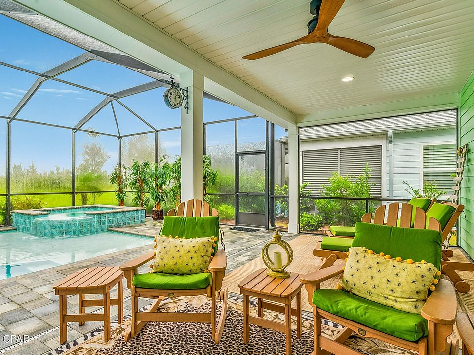 CURRENTLY UNDER CONTRACT, SELLER WILL CONSIDER BACKUP OFFERS Assumable loan at 2.75% with 521k balance remaining! Welcome to 8412 Margarita Place, a pristine, like new pool home in the 55+ community of Latitude Margaritaville Watersound. This beautifully customized 3-bedroom, 3-bathroom Breeze Bay floor plan offers the perfect blend of luxury, functionality, and relaxed coastal living, all on a quiet cul-de-sac with no drive by traffic. Thoughtfully designed for both everyday comfort and entertaining, the home boasts an open, single-level layout with soaring 9' ceilings, 8' interior doors, and luxury finishes throughout. The heart of the home is the expansive quartz kitchen island, comfortably seating six and opening into a light-filled great room with vaulted ceilings, custom fireplace, and a wall of glass sliders that extend your living space to the fully screened lanai. Outside, enjoy your own private retreat featuring a custom pool with a hot tub, an extended tanning ledge, and elegant pavers, all overlooking the tranquil pond beyond. The primary suite is a peaceful haven with recessed ceilings, bay windows with water views, private pool access, and two spacious walk-in closets. The en-suite bathroom features double vanities and a large, tiled walk-in shower. Two generous guest suites each enjoy their own full bathrooms, ideal for visiting family or friends. Additional upgrades include Revwood Mohawk laminate flooring, premium tile selections, upgraded lighting and plumbing fixtures, recessed lighting, ceiling fans, quartz countertops throughout, security system with cameras, premium blinds, and more. This home has been meticulously cared for, lightly lived in, and fully inspected in 2024 with all warranty items addressed. Furniture is negotiable, including Polywood deck furniture, new beds, stylish living pieces, and more. The home also includes a 2-car garage and HOA-maintained landscaping, giving you more time to enjoy the community's resort-style amenities. Latitude Margaritaville Watersound is an exclusive gated community just 7 miles from the beach and less than 10 minutes from ECP Airport. Residents enjoy access to an on site restaurant, resort pool, pickleball and tennis courts, fitness center with lap pool and spa, music venues, clubs, and a vibrant social calendar. New amenities coming soon include a marina, shopping and dining village, theater, ceramics studio, workshop, and more. Just 3 miles from the new Tallahassee Memorial Healthcare campus and FSU College of Medicine extension. Don't miss this rare opportunity to own a like new, fully upgraded home with an assumable loan at 2.75% in one of the area's most exciting communities.