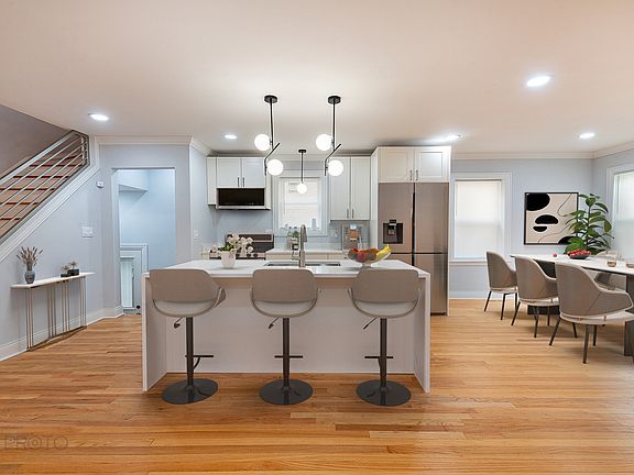 Stunning Renovated 5-Bedroom Home in Prime South Side Chicago Neighborhood Welcome to your dream home! This beautifully renovated 5-bedroom, 3-bathroom residence is situated in one of Chicago's most connected South Side neighborhoods. With three levels of expansive living space, it's perfect for large or growing families. Step inside to find a first-floor open concept layout that seamlessly connects the spacious living room to the modern kitchen. The hardwood floors throughout exude elegance, complemented by a stunning quartz waterfall island, custom cabinetry, and sleek stainless steel appliances. The fully finished basement is an entertainer's delight, featuring 2 bedrooms, a full bathroom, a large entertainment area, a convenient laundry room, and a wet bar-ideal for hosting gatherings. This home boasts numerous updates and modern finishes, including brand-new mechanicals: a new furnace, hot water heater, and central A/C, along with all-new windows for enhanced energy efficiency. Nestled on a quiet residential block, you'll enjoy the tranquility of the neighborhood while being just minutes away from the L train, local parks, and quick access to the Dan Ryan Expressway. A detached 2-car garage is also included for your convenience. Don't miss out on this exceptional opportunity! Schedule your private showing today!