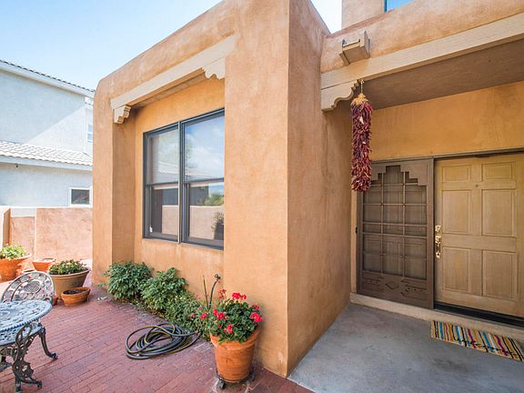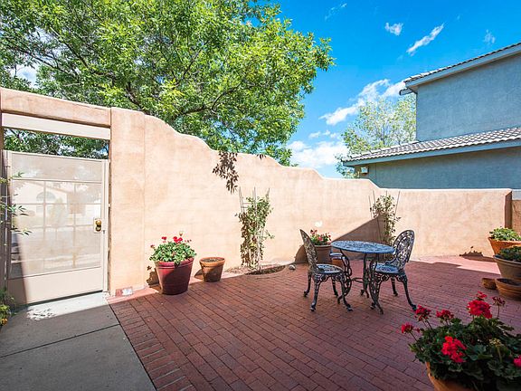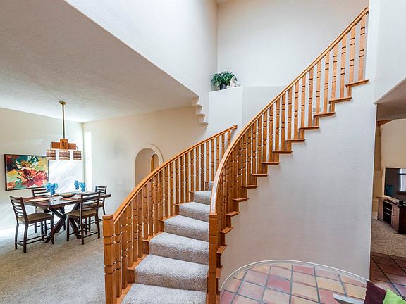 The home you've been waiting for! Fantastic pueblo style in the La Cueva HS district with the Master bedroom downstairs. Beautiful courtyard entry. Spacious living and dining. Kitchen has gas range, island, breakfast bar, walk-in pantry and open to family room with lovely gas kiva fireplace. Windows bring in lots of sunshine and a view of the pool. Large Master has its own kiva fireplace and French door access for a private dip in the pool with a brand new gas powered Reem heater. Two walk-in closets, double sinks, separate shower and large bath complete the perfect, quiet retreat! Upstairs has 3 large bedrooms with great closets, a full bath with double sinks, and a loft. Backyard has enough grass, and that great pool for hot summer days! 3-car garage too!