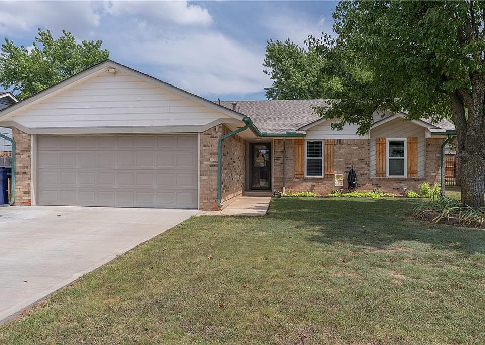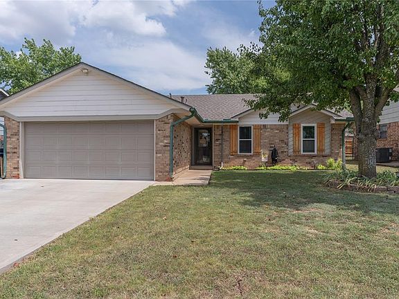 Ideally situated less than 15 minutes from both Stanley Draper Lake and Tinker Air Force Base, this move-in-ready 3-bedroom, 2-bathroom home offers the perfect blend of convenience and comfort. The inviting main entry opens to a sun-filled living room featuring a charming brick fireplace, creating a cozy focal point. The kitchen is both functional and stylish, with painted cabinetry, ample counter space, stainless steel appliances, a pass-through window with a breakfast bar that overlooks the living area, and a reverse osmosis system at the sink for pristine drinking water. The home boasts several recent upgrades for peace of mind, including a new roof in 2024, newer windows installed in 2018, and a tankless water heater for endless hot water. The primary bedroom is a peaceful retreat with an en-suite bath, complete with trendy tiled flooring, a modern vanity, and a shower. Outside, a large covered patio provides an ideal space for entertaining, and the fully fenced backyard offers privacy and security. Don't miss this opportunity—call to schedule your private showing today!