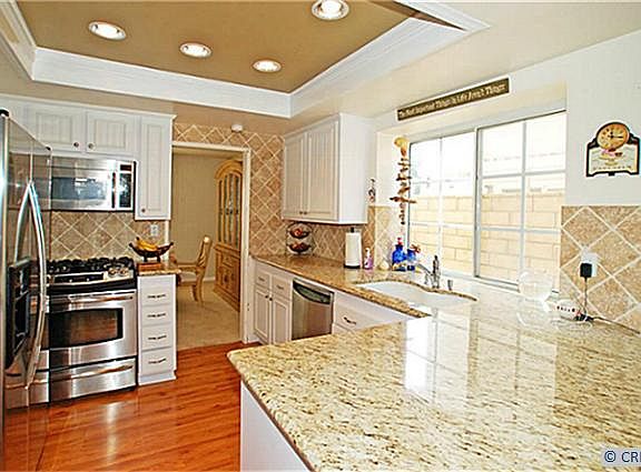 Beautifully remodeled home in desirable Landmark neighborhood. This executive home offers gourmet kitchen with granite counters, stainless appliances, "pottery barn style" cabinets, coffered ceiling with recessed lights, breakfast nook that opens to courtyard patio; plantation shutters, laminate wood floors, neutral carpet, dual pane windows, newer raised panel interior doors, oversized baseboards, scraped ceilings, recessed lights plus separate family room with fireplace. Spacious master suite with double door entry, fireplace and dual closets; formal dining & living room with custom built-ins, ceiling fans, tankless water heater, tile roof, block walls & more! The gorgeous entertainers backyard offers a custom pool & spa plus play area t