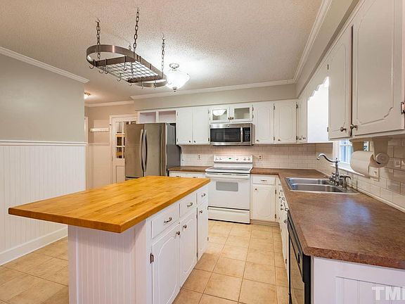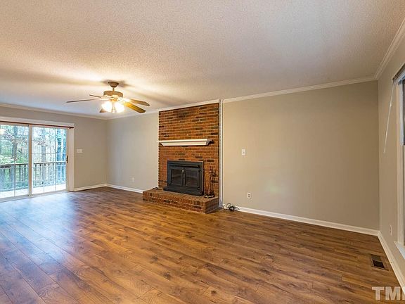 Fantastic location on a quiet ~1 Acre cul-de-sac lot. Great setting & property! Large family room w/newer hrdwd style flooring, brick wood-burning fireplace & crown molding. Formal dining rm. Kitch w/updated counters, subway tile bcksplsh, & appliances. Mster w/walk-in closet. New carpet up. Fresh int. paint. Lrg strge off of bedrm. Amazing outdoor decking & priv yrd. Long conc drive & parking pad. Garage & 10x20 shed too. NO HOA, covenants, water or sewer bill & low county taxes! See Video Walk-Through