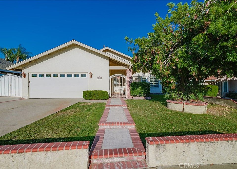 Welcome to this beautifully upgraded single-story home nestled in a quiet community. As you approach the house, you'll find a cozy, covered front porch that provides a private entry. The gated fence ensures safety and adds convenience, offering extra space for personal items like bicycles, toys, or a stroller.