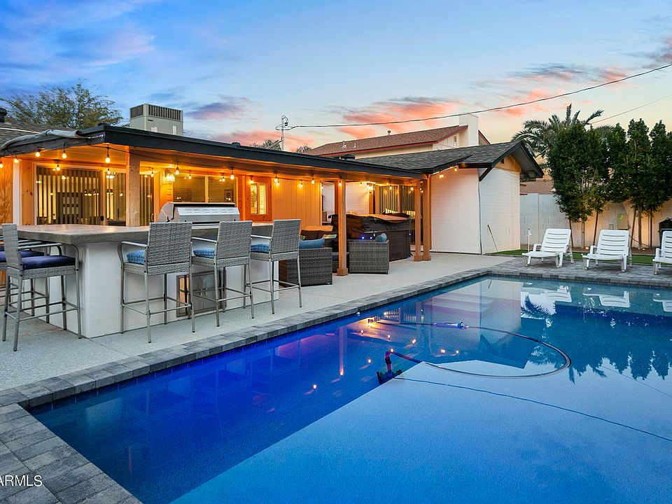 2023 Completed Modern Designer Remodel with Brand New Pebble Tec Pool Completely Private Backyard located in one of the most desirable South Scottsdale/Old Town areas one block south of the canal/path. Mummy Mountain Views off front yard sitting area! Multi-Million dollar homes being constructed in these northern units of Park Scottsdale. Great Room Open Concept Plan designed for entertaining inside & out! Open Kitchen-Great Room plan with 3 Bedrooms+Den or guest room,1 car garage + double gated large covered carport including powered storage shed/workshop. Shiplap siding and tongue & groove soffit surrounds. 8x8 wood beams inside & out. Large granite waterfall gas cooktop range island kitchen with under counter cabinets, soft close doors & drawers and drop down hood canopy. NO NOA! Built-In breakfast bar eat-in kitchen and beverage cooler. Luxury owner's suite has a large soaking tub, oversized dual vanity, spacious walk-in rain shower with additional handheld wand, fireplace sitting room, TWO large walk-in closets, and direct spa patio access. Spacious guest bath has a walk-in rain shower with additional handheld want and overhead skylight. Cozy office or guest bedroom with weathered wallboard surrounds has a built-in granite counter desk, double locking barn doors for privacy, small closet and access to the private covered patio backyard. Fireplaces in Great Room and at the extended Owner's Suite sitting area. Spacious cozy tongue & groove soffit private patio has a large bar seated built-in bbq and spa. Backyard is completely private and has been lined with large green privacy trees. 7700sf lot with double gates on each front side of home and double gate to back alley. Spacious laundry room has an additional refrigerator. Professional epoxy garage has direct access to home and service door access to double gate side yard. Patio & front sitting area have been professionally surfaced with kool deck and perfect for enjoying friendly neighbors and Mummy Mountain Views. Tongue & Groove Soffits at front & back covered patio areas. Professional landscape lighting adds superb curb appeal. Home is equipped with a Smart thermostat & smart garage door opener and a Blink smart door bell system with multiple smart home exterior cameras. Dimmer switches throughout. Hickory wood plank tile throughout most of home (carpet only in two secondary bedrooms). New Trane 5 ton AC unit including new AC venting/plumbing, new gas tankless water heater, R49 insulation in home, R30 in garage, new irrigation timer & lines. 200 AMP Electrical Panel. Granite Reef ends at the canal so minimal vehicle traffic just a great ambiance of friendly people walking the area and the canal. Homes well taken care of in this neighborhood - one of the hottest areas of Park Scottsdale