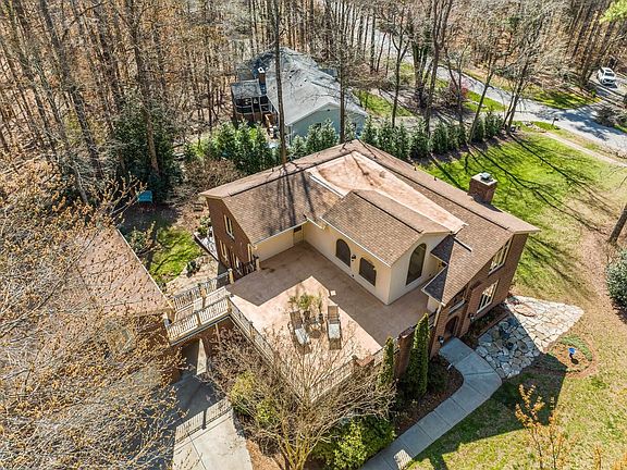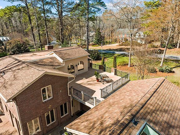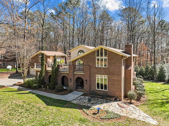 Spanish inspired estate home in popular Springdale Estates - Detached guest suite/in law suite w/ full bath or private office - Grand wood carved spiral staircase - Sunny two story foyer - Home Theatre - 4 side brick exterior - Updated kitchen w/ granite, s/s appliances & gas cooktop - Four inch red oak hardwood floors throughout most of first floor - Sunroom/exercise room - Rooftop balcony - 2 decks plus interior courtyard - Cleared side yard makes great play area - All Leesville schools - No city taxes - Convenient location, one exit from Brier Creek, close to RTP/RDU