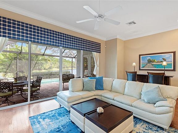 Enjoy tranquil lake views from this beautiful, updated, New England-style Mallards Landing former show home, in award-winning Fiddler's Creek. The spacious Driftwood floor plan provides a great room, family room with fireplace, formal dining room, 3 bedrooms, and 3 bathrooms on the split plan for maximum privacy for you and your guests. Features include hardwood floors throughout the main living areas and plenty of natural light streaming in, plus crown molding, tray ceilings, wainscoting and batten walls. The eat-in kitchen boasts an island with a sink and breakfast bar, upgraded cabinetry, and pantry. Relax in the inviting master suite with a sitting area, lovely lake views, and walk-in closets plus an en-suite with dual sinks, enclosed WC, tiled shower and separate soaking tub. Entertain with ease on the paver lanai overlooking the lake, or float the day away in the heated, negative edge pool. Fiddler's Creek offers world-class amenities such as a resort-style pool, casual and fine dining, pickleball, fitness center and day spa, along with optional golf, beach, and marina memberships.