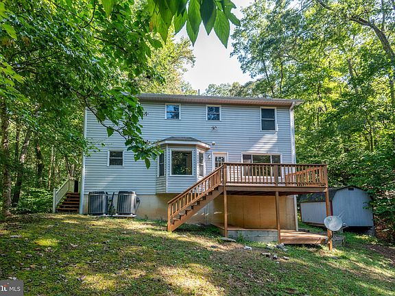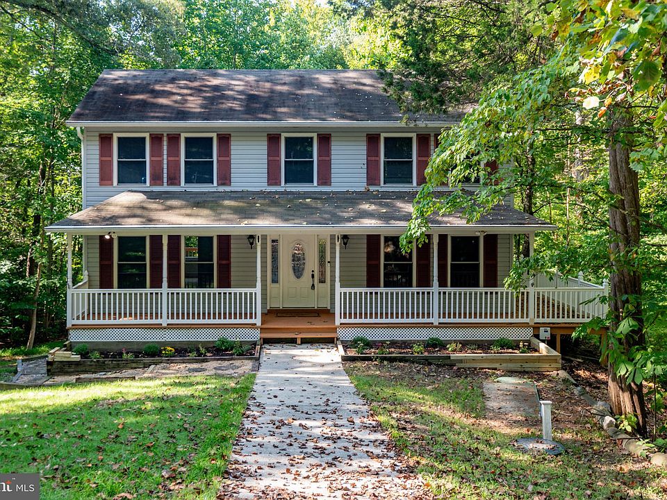 VERY NICE COLONIAL NESTLED AMONG THE TREES IN CENTRALLY LOCATED WHITE SANDS WITH TONS OF PRIVACY. GREAT FLOOR PLAN WITH PRIMARY SUITE, 3 ADDITIONAL BEDROOMS AND A FULL BATH ON SECOND LEVEL. HUGE EAT-IN KITCHEN, LIVING ROOM AND DINING ROOM ... PLUS A POWDER ROOM ON MAIN LEVEL. THE ALMOST FULLY FINISHED WALK-OUT BASEMENT. HAS A SPACIOUS REC ROOM AND A SEPARATE ROOM FOR STORAGE WITH A WORKBENCH. NEW WINDOWS. WRAP AROUND COVERED PORCH. DECK VA ASSUMABLE!!!